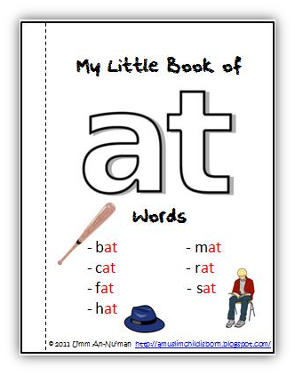 For the sister who requested a beginning reader that teaches the -at word family, here is a little book that, insha'Allaah, will help in your journey. If you like, I can make a book for each of the word families insha'Allaah. Please just let me know and for the sake of Allaah I will be happy to do so.